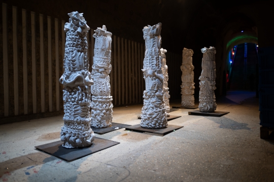 Au bruissement animal des installations de Bertrand Gadenne, artiste disparu cette année à qui la Maison Pommery rend hommage, répond la nature artificielle des œuvres de Choi Jeong Hwa, résonnant avec panache. Ou encore, la fugacité des papillons d’Encoreunestp dialogue avec son installation immersive. Les vidéos d’Angelica Mesiti transportent les visiteurs dans un état d’apesanteur, tandis que celles d’Anne Charlotte Finel les invitent à rêver. D’autres œuvres interpellent avec ironie ou humour, ou offrent tout simplement un moment d’émerveillement. Le parcours se construit également en dialogue avec les œuvres de la collection permanente de la Maison Pommery comme Laurent Grasso ou Jacqueline Dauriac. Intime et minutieuse, l’exposition dans les caves s’enrichit et se transforme, change de visage et de rythme. Elle vit, et son cœur bat plus que jamais.
